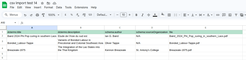 Les principales difficultés concernaient le formatage du CSV, l’encodage, le mapping vers Dublin Core et l’association des fichiers PDF.